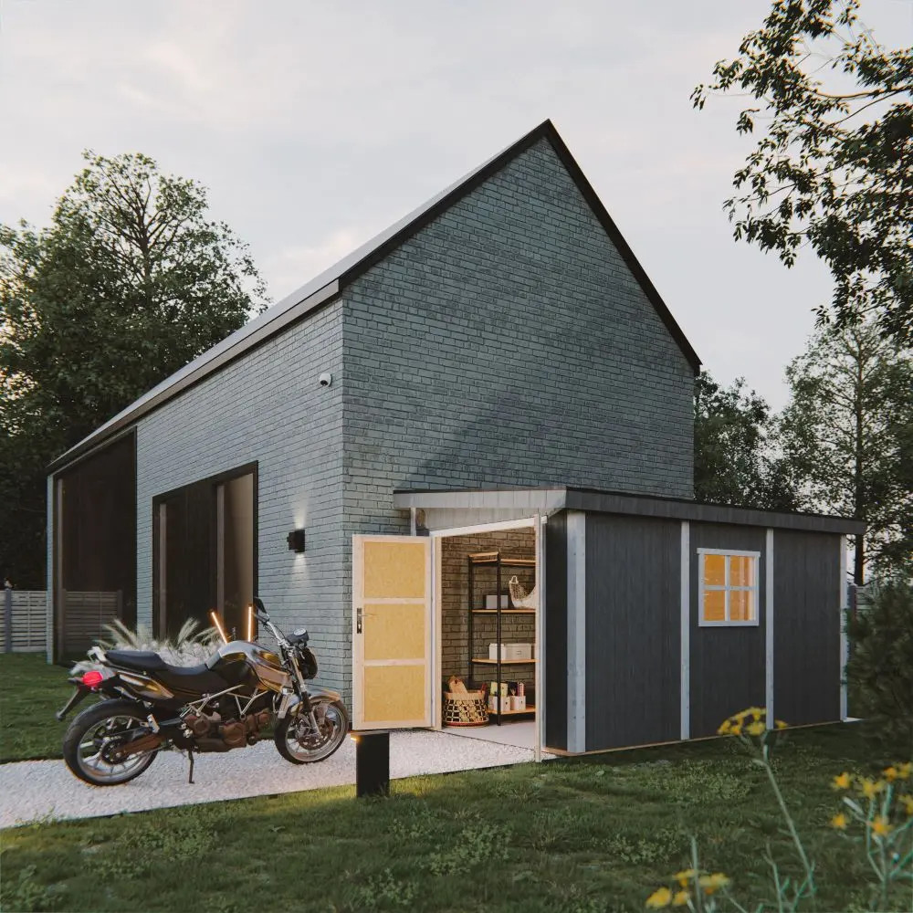 Casetta da giardino moderna e minimalista LP® SmartSide® – uno spazio pratico e organizzato per conservare attrezzi da giardinaggio, biciclette, piccoli utensili o giocattoli.