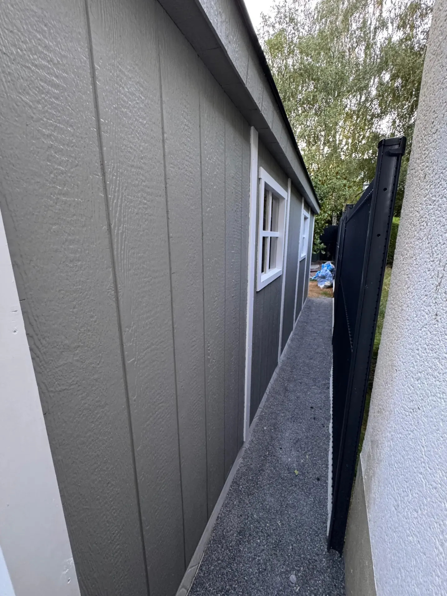 Casetta da giardino moderna e minimalista LP® SmartSide® – uno spazio pratico e organizzato per conservare attrezzi da giardinaggio, biciclette, piccoli utensili o giocattoli.