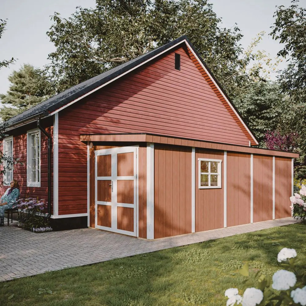 Struttura solida a pannelli: Le pareti sono realizzate con un telaio in legno da 60×60 mm e pannelli LP® SmartSide® da 10 mm con rivestimento primerizzato – per garantire durata e stabilità anche in condizioni meteo difficili.