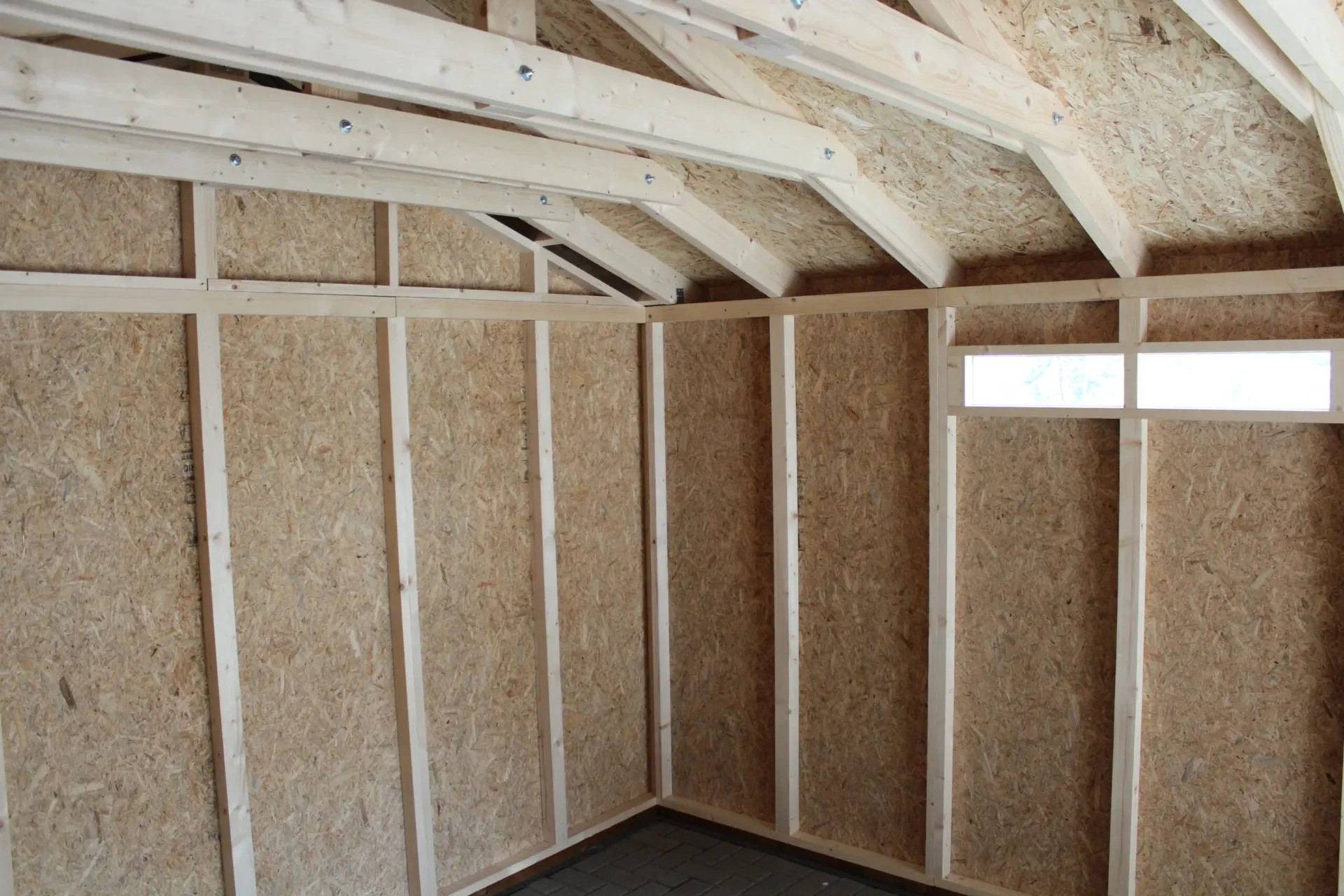 Struttura solida a pannelli: Le pareti sono composte da un telaio in legno da 60×60 mm e pannelli LP® SmartSide® da 10 mm con finitura primerizzata – garantendo stabilità e durata anche in condizioni climatiche difficili.