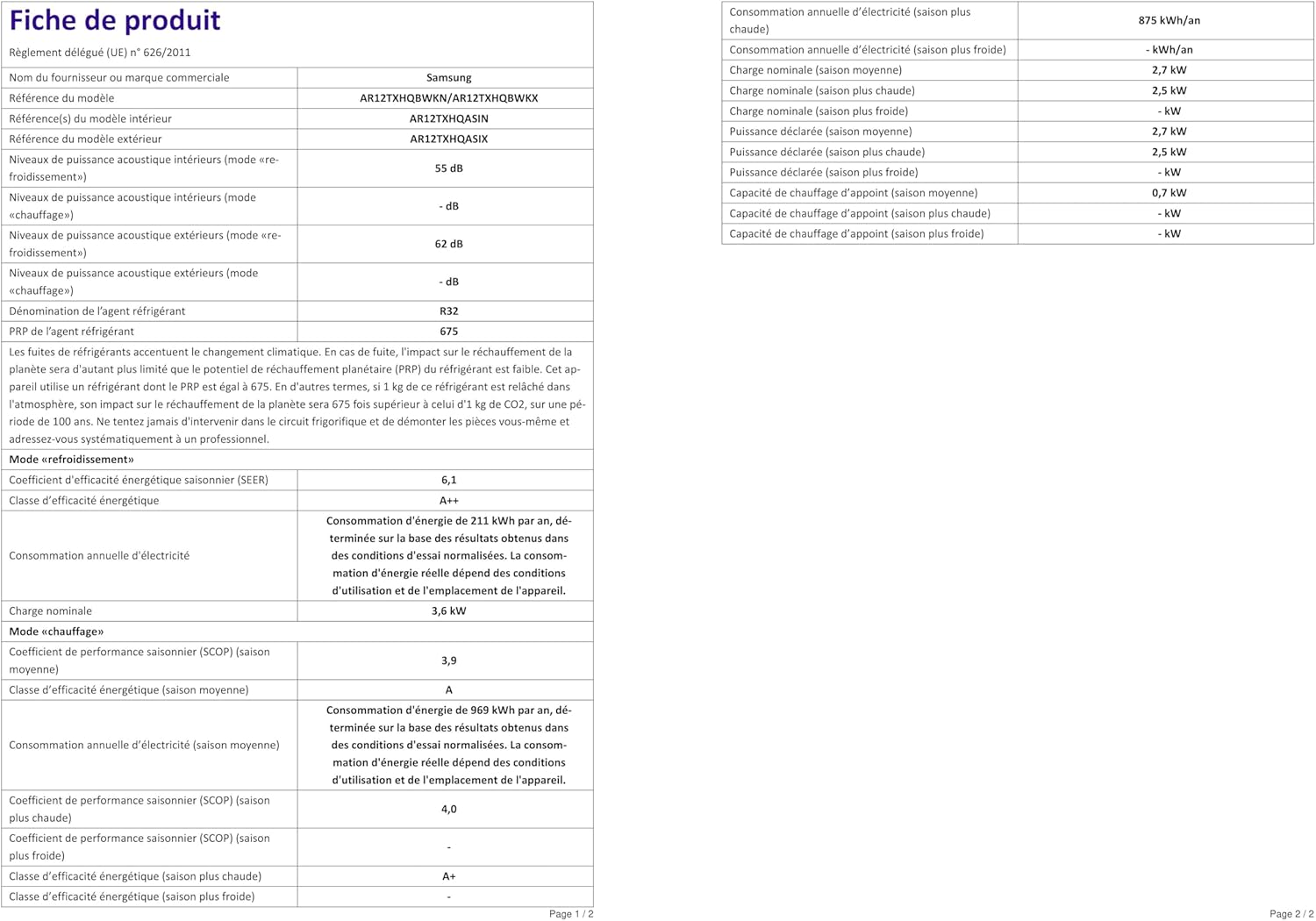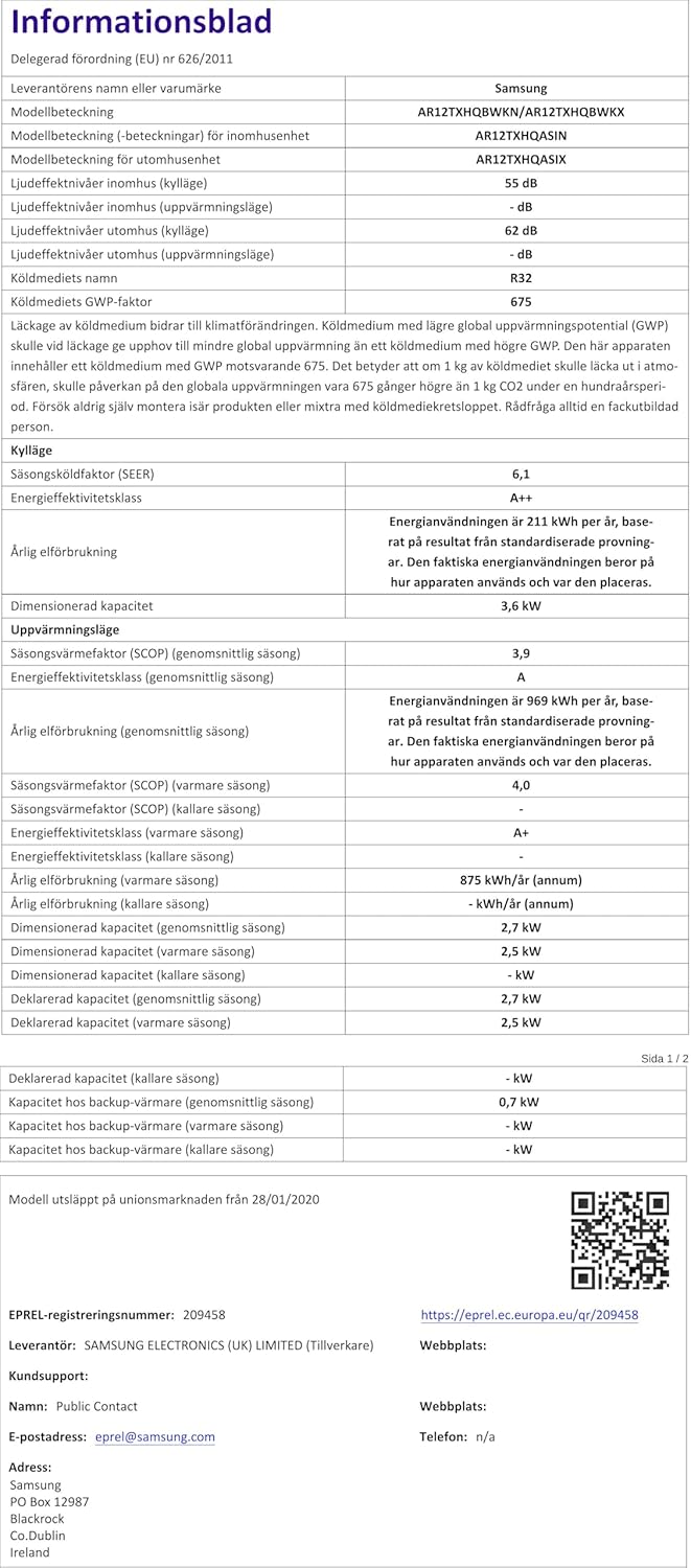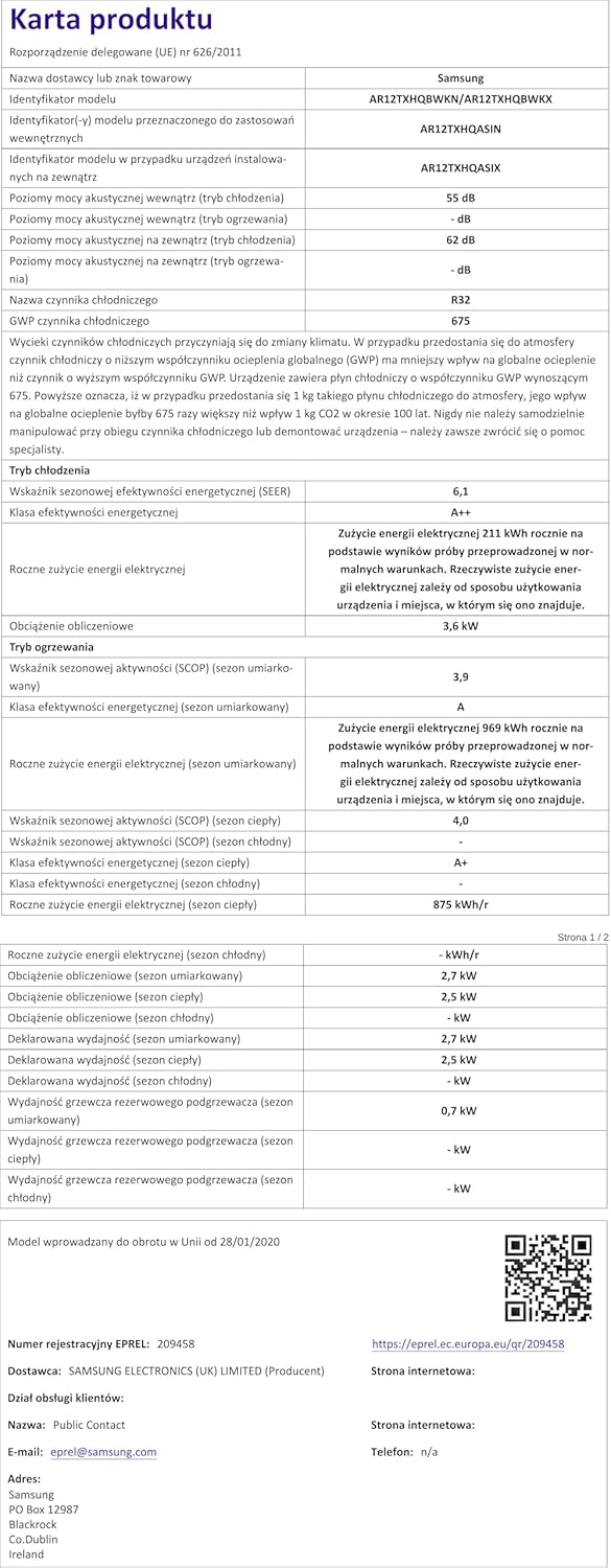 Codice Unità Esterna: AR12TXHQBWKXEU
