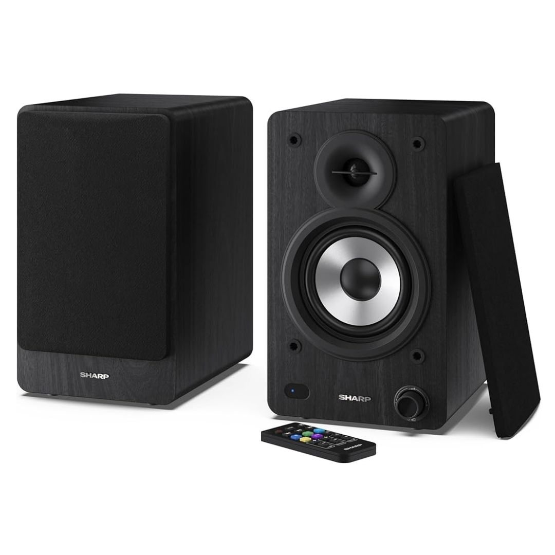 Gli altoparlanti Sharp CP-SS30 sono la soluzione definitiva per chi cerca un audio di alta qualità senza ingombrare eccessivamente la scrivania. Questo sistema di diffusori attivi a 2 vie combina un design elegante in legno nero con una connettività moderna, rendendoli perfetti sia per il setup da ufficio/smart working, sia per l'intrattenimento domestico.