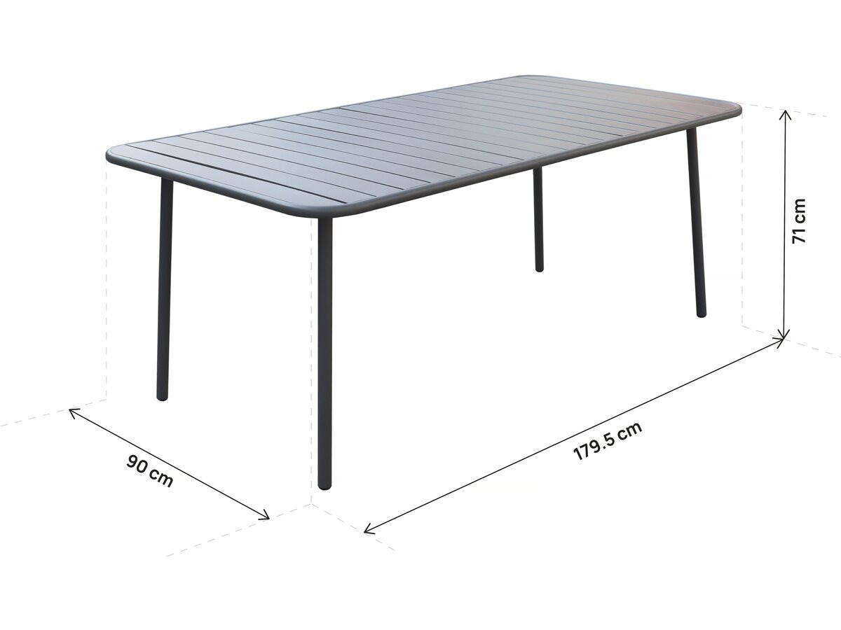 Materiale : Realizzato in metallo (probabilmente acciaio o alluminio), il tavolo è progettato per resistere agli agenti atmosferici, come pioggia e sole, ed è perfetto per l'uso all'aperto.