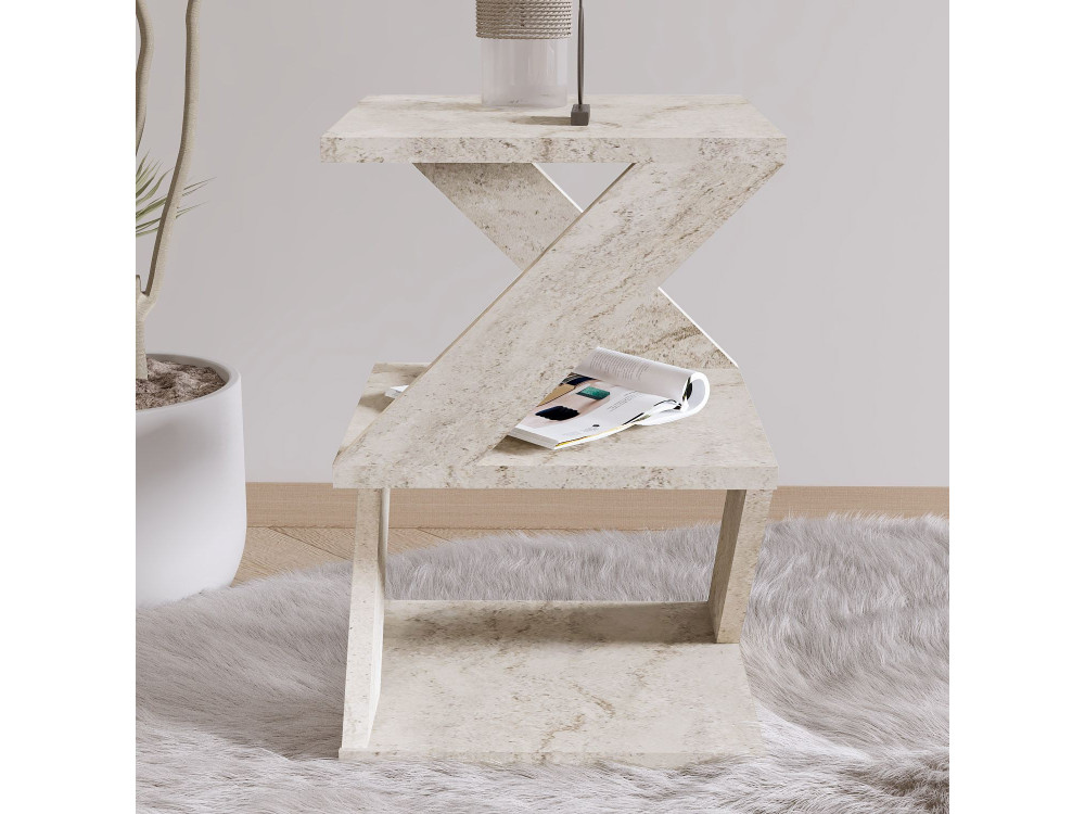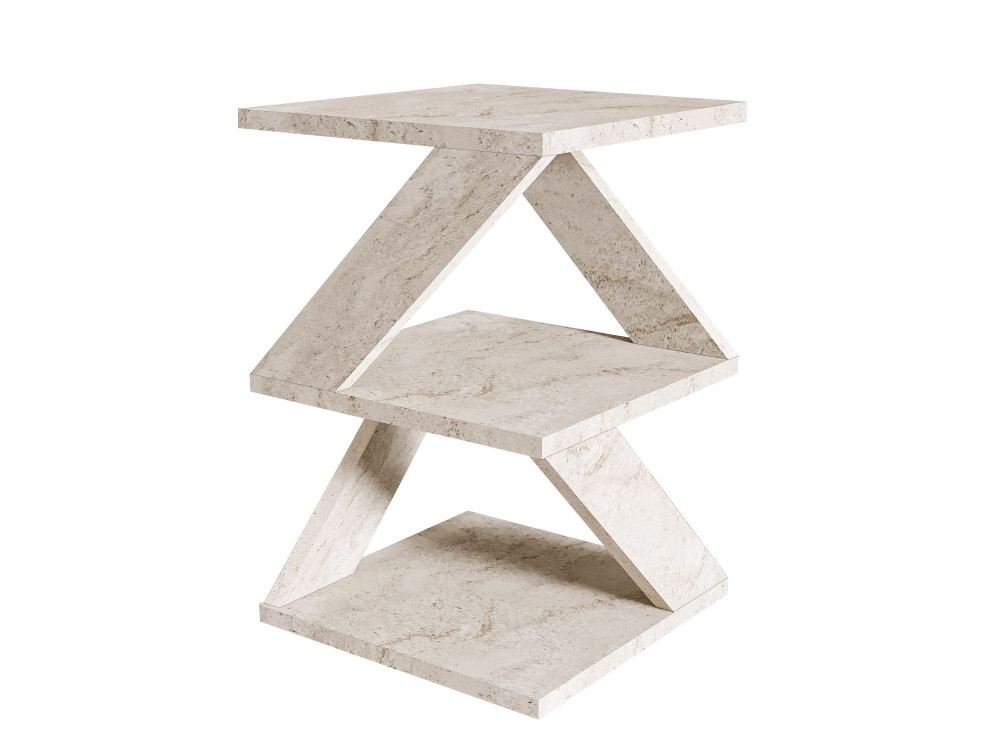 Se il bianco era minimalista e il pino era rustico, il travertino trasforma questo piccolo complemento in una vera e propria colonna architettonica. Nonostante le dimensioni ridotte, la trama della pietra conferisce al tavolino un "peso visivo" e un'eleganza che lo rendono capace di reggere il confronto anche con arredi molto costosi.