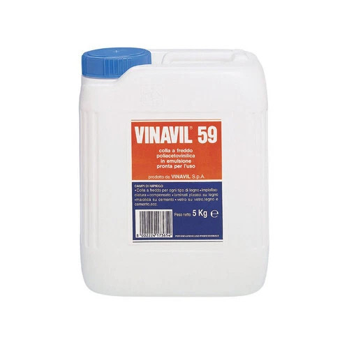Vinavil 59 è un adesivo vinilico professionale ad alte prestazioni, caratterizzato da un'ottima rapidità di presa e un elevato potere incollante. Composto da una dispersione di acetato di polivinile in acqua, è studiato appositamente per il settore della falegnameria e del mobile. Grazie alla sua formulazione bilanciata con un pH neutro, garantisce incollaggi puliti e sicuri, diventando trasparente dopo l'essiccazione per non alterare l'estetica del manufatto.