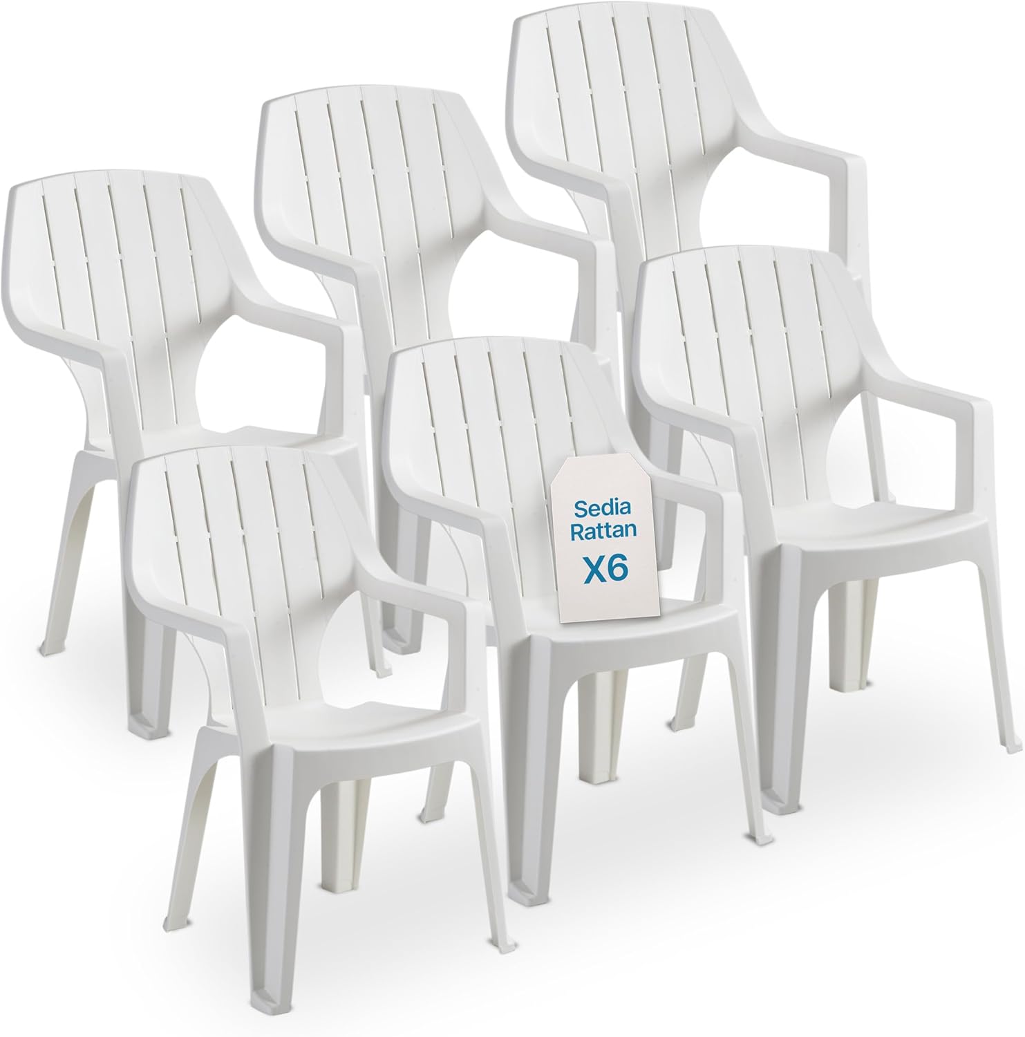 Art. 5037 Set 6 Sedie da Giardino in Plastica Effetto Legno Bianco